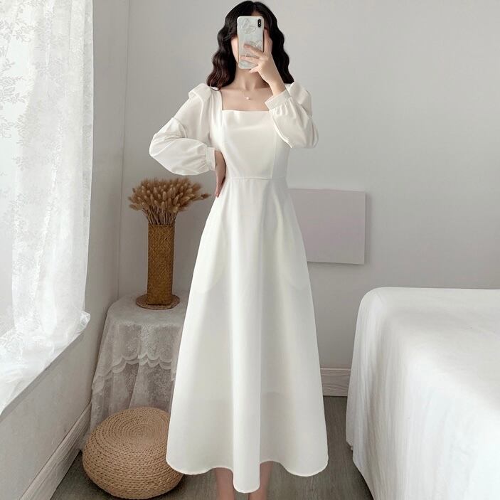 【S~XXL,2color】スクエアネック シンプル ワンピース a014