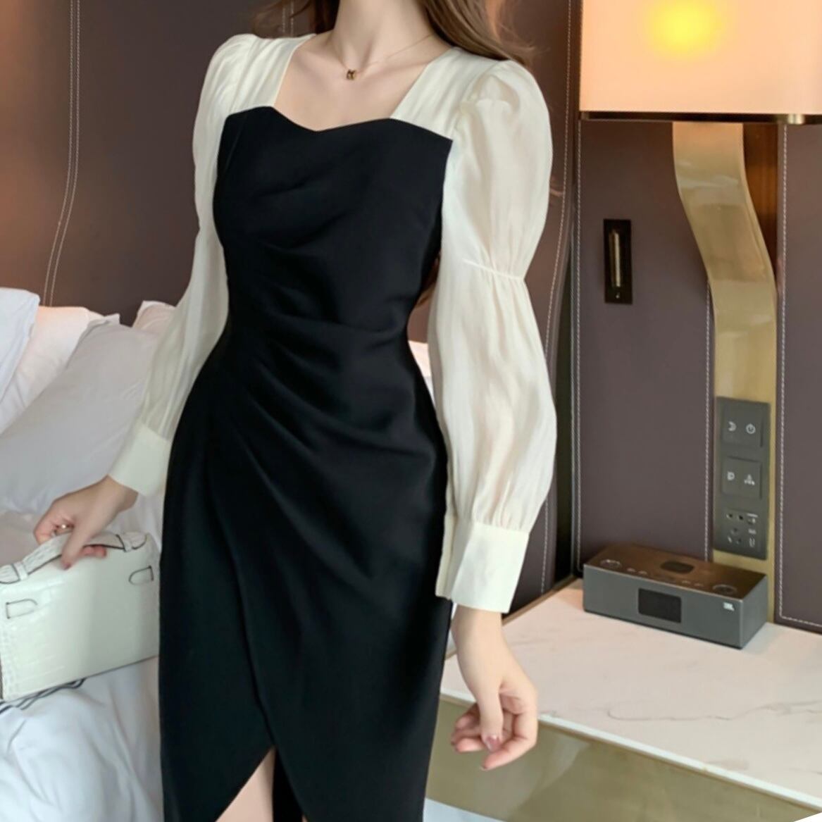 【S~XXL,2color】フロントスリット セクシー ワンピース a015
