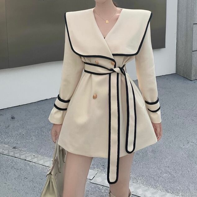 【S~L,3color】ビッグカラー バイカラー 千鳥格子柄 コート a053