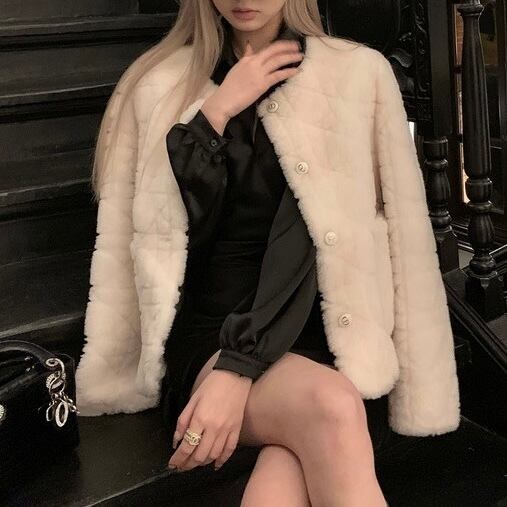 【FREE,2color】高級ウール キルティング もこもこ ジャケット a071