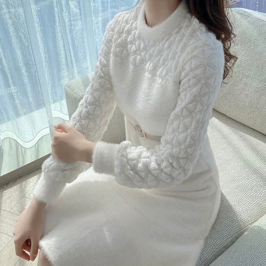 【S~XL,1color】エンボス 胸元切替 ワンピース ホワイトa083